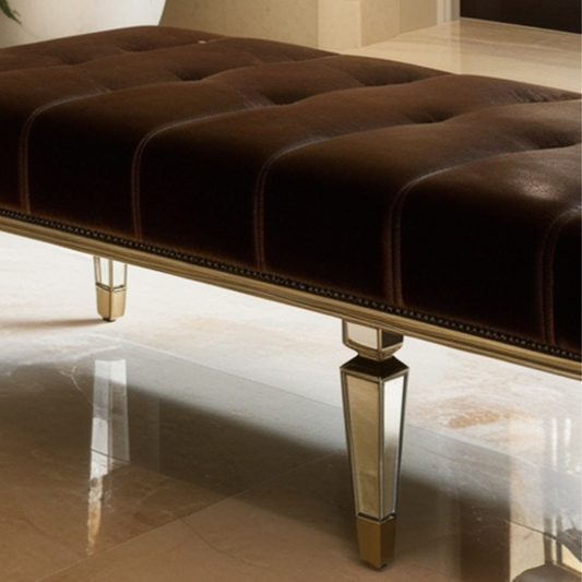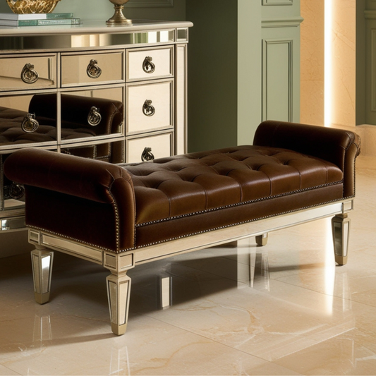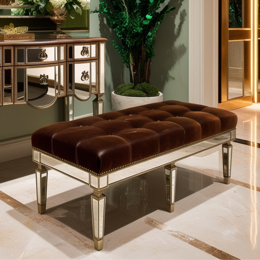 Leather Upholstered Mirrored Bench