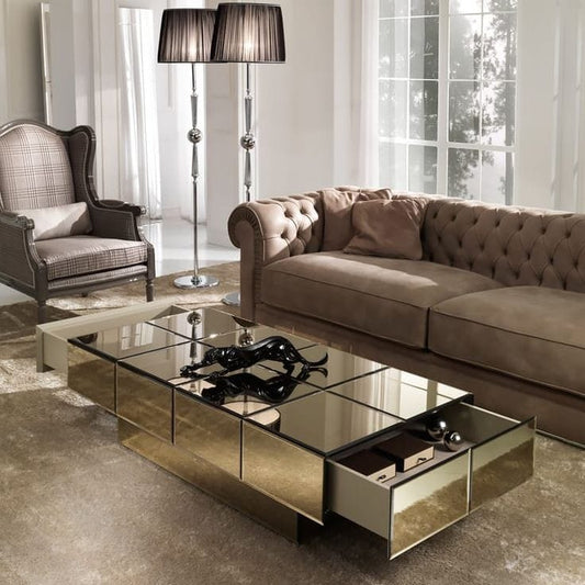 Rectangular Mirrored Center Table with Drawers
