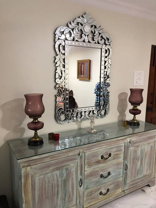 Discover elegance in every reflection with our Venetian Mirrors collection, offering over 500 luxurious, customizable designs perfect for living rooms, bedrooms, and more. Inspired by the intricate artistry of Venice, these timeless pieces blend traditional craftsmanship with modern techniques. Proudly handmade in India, they reflect unparalleled quality and sophistication. Venetian Design brings this legacy to life, transforming spaces with mirrors that are more than decor—they're works of art. With worldwide delivery, elevate your interiors with the charm of these handcrafted masterpieces.